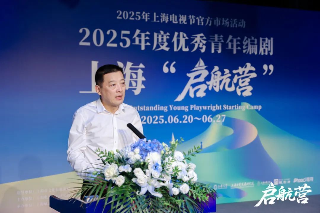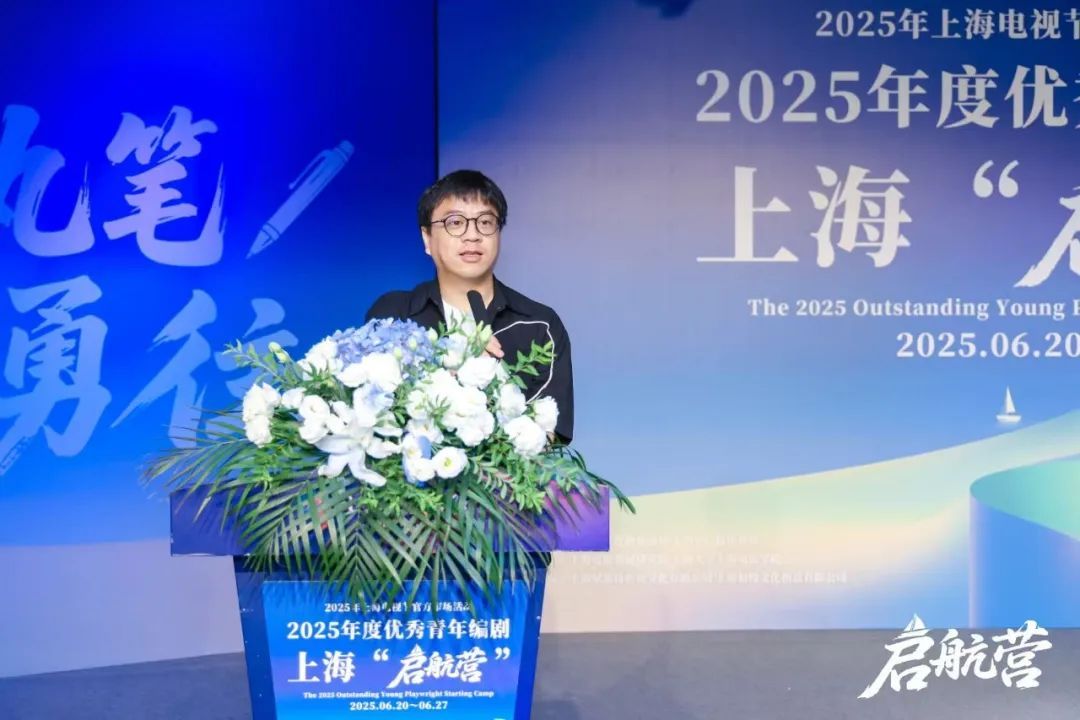 “启航营”发起人、上海福得文化创意有限公司总经理、制片人、编剧饶俊也上台进行了发言。他表示,“启航营”的诞生,源于一个朴素而坚定的信念:为时代培育讲好故事的人。本届“启航营”精心设置了两个极具前瞻性和挑战性的主题——“长短之争:微短剧何以破局,长视频如何革新”和“AI赋能文艺创作:技术跃迁,重塑未来”,他们期望通过最前沿的行业洞察、最实战的经验分享、最深入的创作交流,帮助青年编剧拓宽视野、夯实基础、激发灵感,让“启航”之名,真正成为大家创作生涯中一个值得铭记的新起点,助力大家扬帆驶向更广阔的创作蓝海。