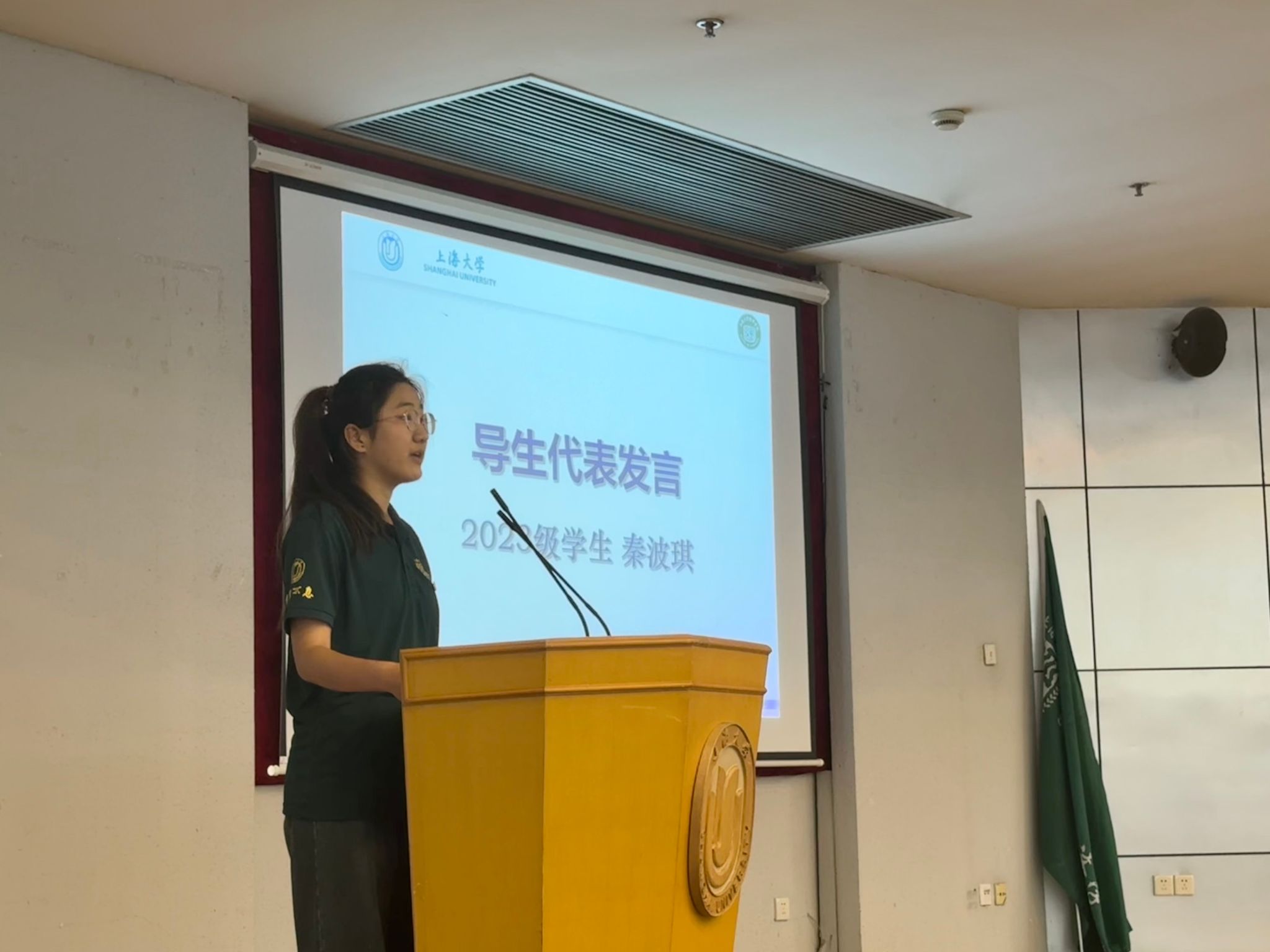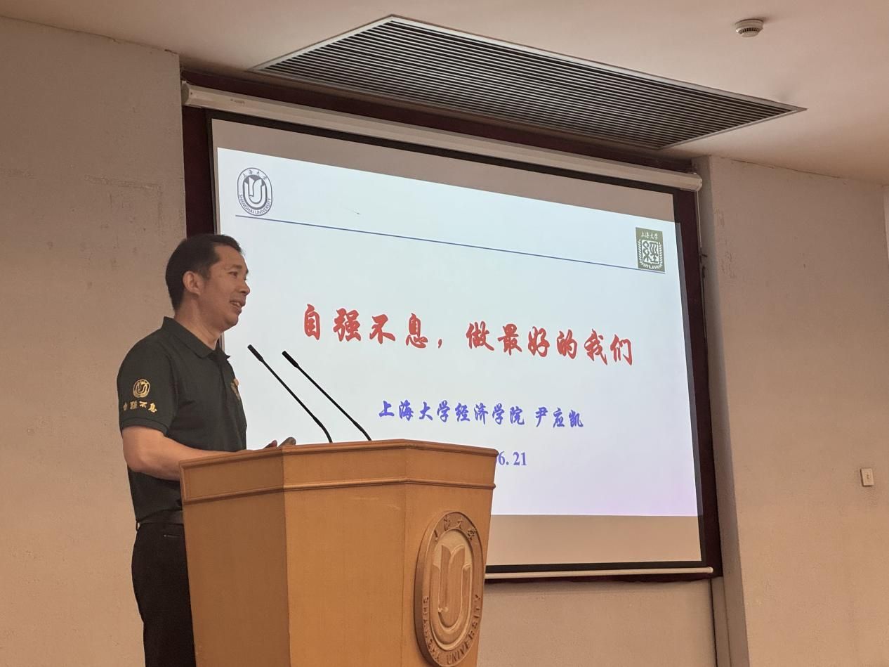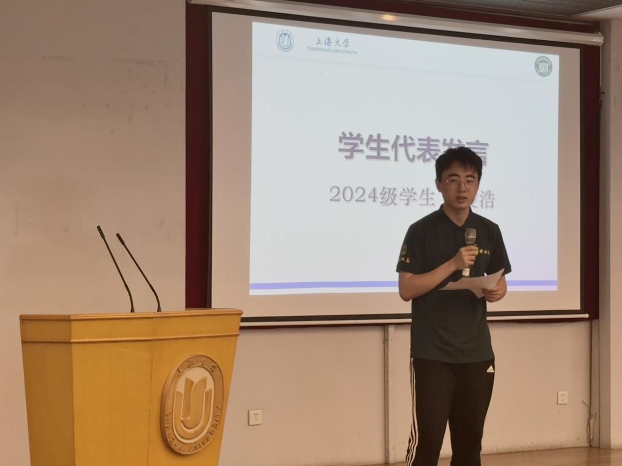 首先,尹应凯以“自强不息,做最好的我们”为题致辞。他详细地介绍了自强不息的上海大学,回顾了学校在历史长河中的成长与辉煌。接着,他鼓励同学们在学院中传承自强不息的精神,不断突破自我、勇攀高峰,努力成为最好的自己。